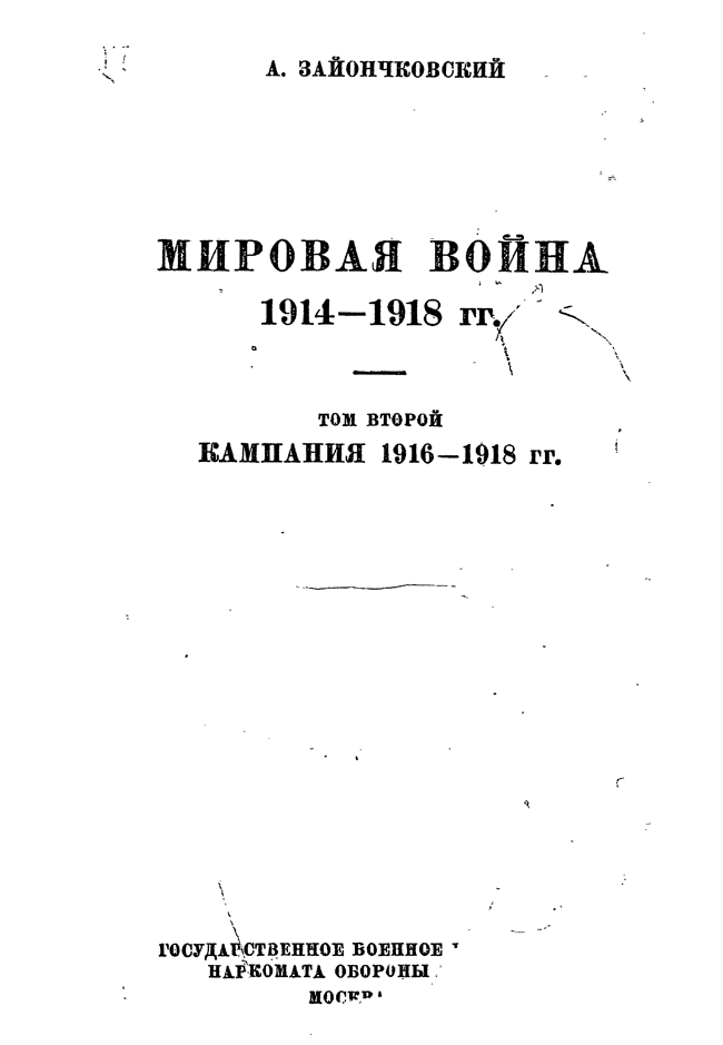 Мировая война 1914—1918 гг. Том II. Кампания 1916 - 1918 гг.