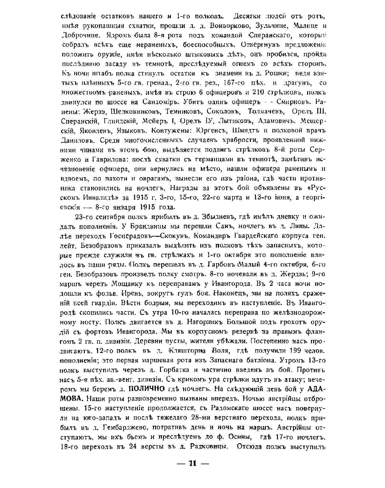 Документальное описание боевых действий полка и знаменательных исторических событий, связанных с ним, за период 1914 – 1917 годов. Приведены поименные списки офицеров, награжденных орденами Св.Георгия и Георгиевским оружием, убитых и умерших от ран.