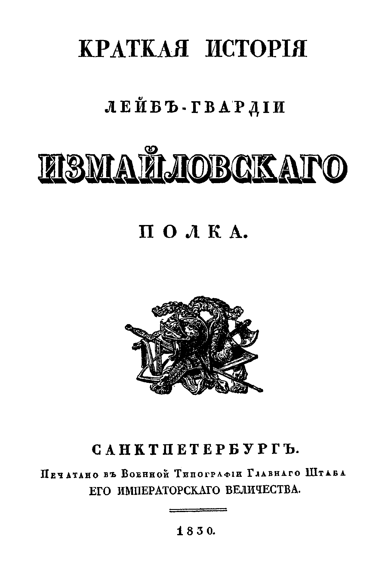 Краткая исторiя Лейбъ-гвардiи Измайловскаго полка