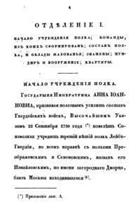 Документальное описание боевых действий полка и знаменательных исторических событий, связанных с ним, за период 1730 – 1830 годов.