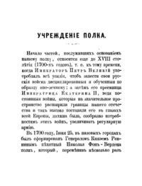 Документальное описание боевых действий полка и знаменательных исторических событий, связанных с ним, за период 1798 – 1898 годов. Приведены списки шефов, команди-ров, штаб- и обер-офицеров полка, нижних чинов, награжденных знаком отличия Воен-ного ордена, с указанием номеров знаков, погибших и умерших от ран чинов полка.