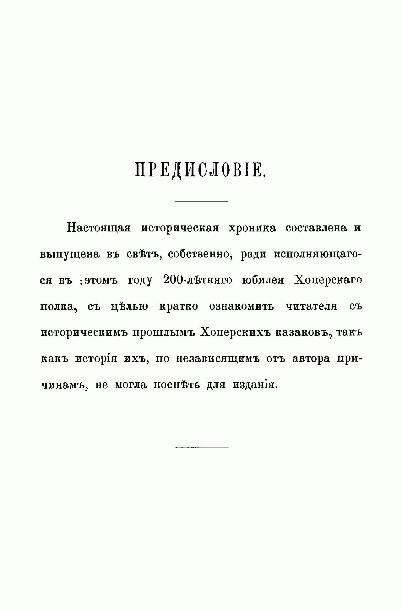 Документальное описание боевых действий полка и знаменательных исторических событий, связанных с ним, за период 1696 – 1896 годов. Приведен список высочайших наград, жалованных Хоперскому полку за подвиги и отличную службу.