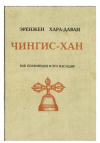 Доктор Э. Хара-Даван издал книгу «Чингис-Хан как поководец и его наследие» в 1929 году на собственные средства. Автор выражает свою точку зрения на личность и завоевания великого полководца. Идеалом Чингис-хана было «создание единого царства Человечества», при котором «прекратятся взаимные войны и создадутся условия для мирного процветания человечества как в области духовной, так и материальной культуры». Автор делает выводы о влиянии «монгольского ига» на государственность России.