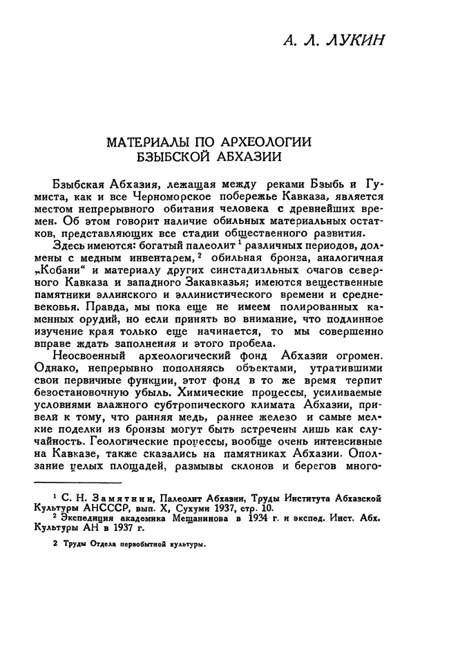 Материалы по археологии Бзыбской Абхазии.