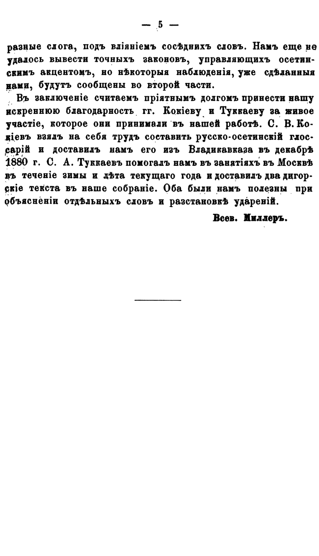Под общим названием «Осетинские этюды» историко-филологическим отделом Университета был издан ряд материалов и исследований, имеющих целью изучение языка осетин, их этнических сказаний, религиозных воззрений и их прошлого. «Осетинские этюды» — результат двухлетних занятий осетинским языком и поездкой в Осетию, предпринятой летом 1880 года.