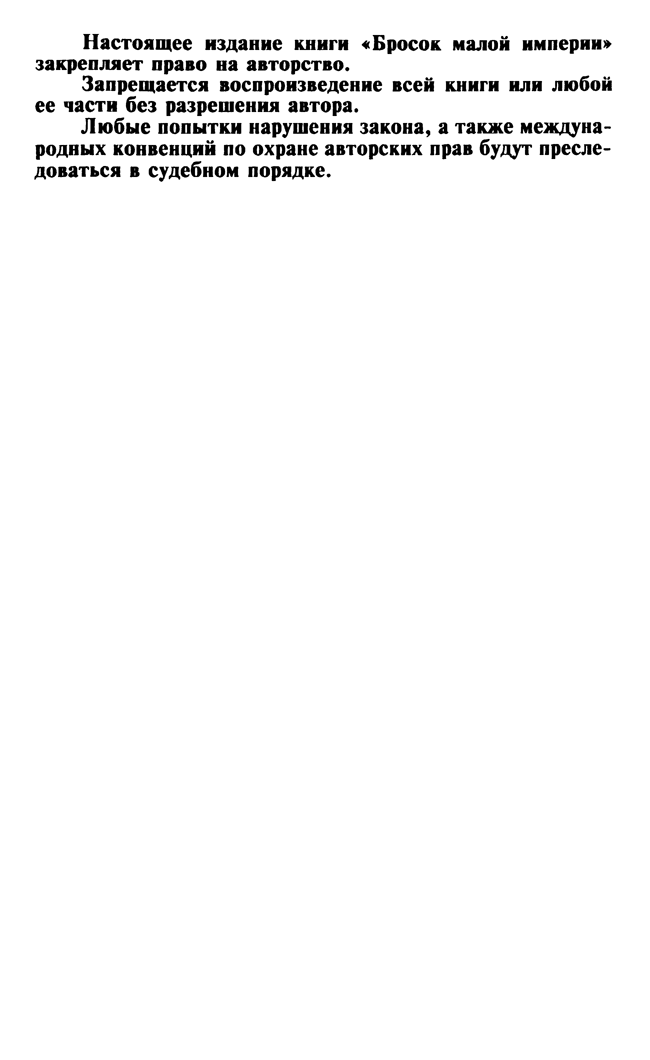 Книга «Бросок малой империи» посвящена истории и предыстории грузино-абхазской войны 1992-1993 годов. Автор ставил перед собой задачу показать взаимосвязь между всеми значительными событиями, имеющими отношение к этой войне, а в более широкой ретроспективе – ко всему грузинскому национальному движению и его стремлению построить «малую империю». Для того, чтобы опровергнуть все возникшие легенды об абхазском конфликте, необходимо дать широкую картину событий на Кавказе и в Закавказье, связанных прежде всего с грузинским революционным движением, а также с деятельностью Конфедерации народов Кавказа. Не разобравшись во внутриполитической ситуации в Грузии в 19891993 годов, невозможно составить четкое представление о войнах в Южной Осетии, Абхазии и Мингрелии. Именно поэтому в этой книге дано краткое описание грузино-осетинского конфликта, более подробно рассматриваются мингрельские войны и звиадистские восстания.