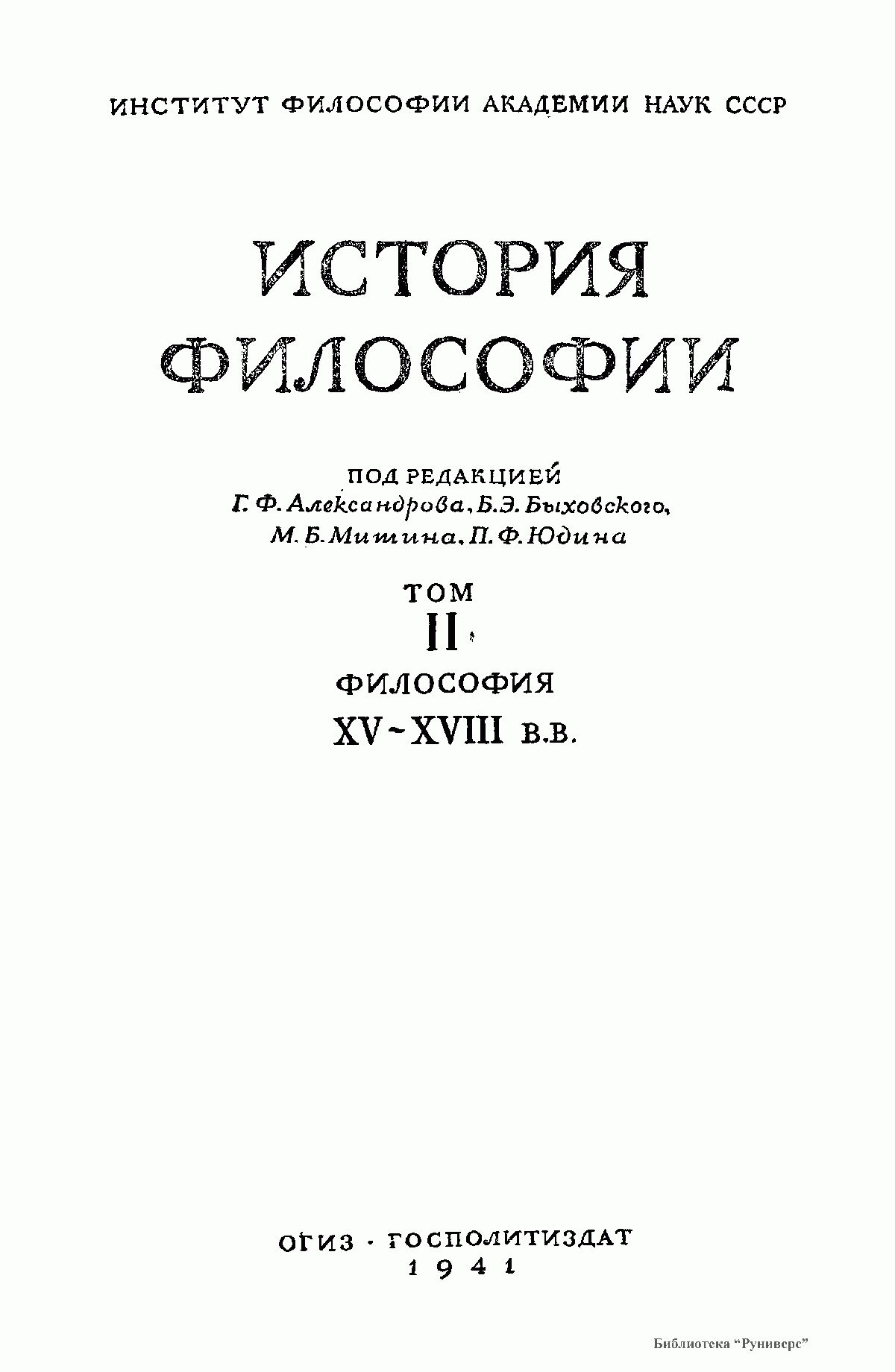 История философии. Том II. Философия XV-XVIII вв.