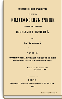 Постепенное развитiе древнихъ философскихъ ученiй въ связи съ развитiемъ языческихъ вѣрованiй. Часть III. Вторая половина греческой философiи и общiй взглядъ на характеръ этой философiи
