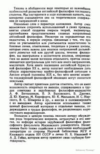 Настоящая книга представляет собой изложенне и критический анализ с позиции "марксистко-ленинской методологии" (единственно приемлемой в СССР) основных направлений британской буржуазной философии с конца XIX в. до второй половины XX в. Основное вннманне в работе известного историка философии уделяется взглядам английских буржуазных философов иа проблемы теории пoзнання и онтологии. Богатая фактическим материалом и интересными наблюдениями над эволюцией буржуазного мировоззрения эа последнне сто лет.