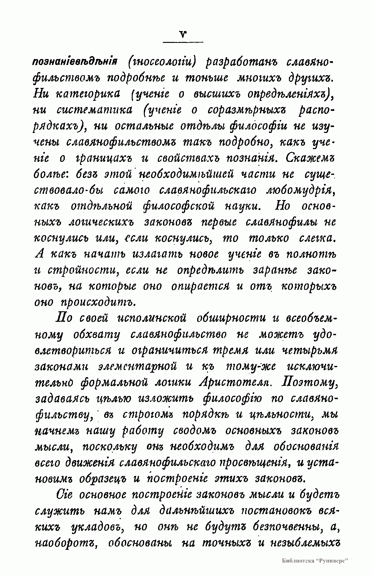 Славянофильство, как богословско-философско-научное учение восточного греко-славянского просвещения в отличие от романо-германской цивилизации складывается в сложное, но стройное, построение или уклад (систему). Славянофильство в своем мировоззрении, жизнепонимании познаниеведении (гносеологии) и вероисповедании резко отличается от всего круга знания и верования западноевропейской культуры. Оно, как особое и обобщенное тело познания (организм) представляет собою художественное, прекрасное и мощное построение, полное чарующей простоты, соразмерности (гармонии) и всеединства. По своей исполинской обширности и всеобъемному обхвату славянофильство не может удовлетвориться и ограничиться тремя или четырьмя законами элементарной и к тому-же исключительно формальной логики Аристотеля. Поэтому, задаваясь целью изложить философию по славянофильству, в строгом порядке и цельности, мы начнем нашу работу сводом основных законов мысли, поскольку он необходим для обоснования всего движения славянофильского просвещения, и установим образец и построение этих законов. Сие основное построение законов мысли и будет служить нам для дальнейших постановок всяких укладов, но они не будут беспочвенны, а, наоборот, обоснованы на точных и незыблемых законах самой мысли. При этом постараемся наше изложение и даже построение выразить, для большей отчетливости и определенности, числовыми и геометрическими (математическими) образами.
