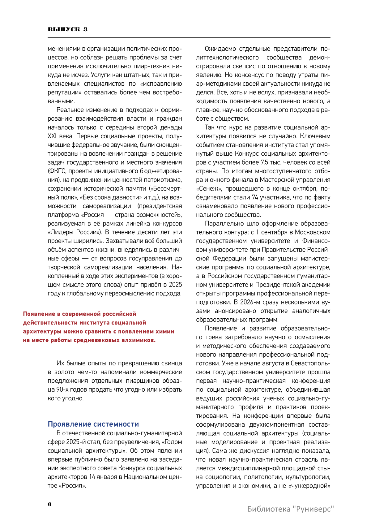 Издание представляет собой научно-популярный сборник с татей посвящён анализу ключевых вызовов, стоящих перед Россией и миром в эпоху глобальной перестройки и наступления «Эпохи Цифры», фокусируясь на вопросах цивилизационного выбора, экономической суверенности и новых подходах к управлению обществом. Материалы призваны преодолеть инерцию мышления «здесь и теперь» и предложить абстрактные, межсистемные рамки для создания долгосрочных архитектур развития.