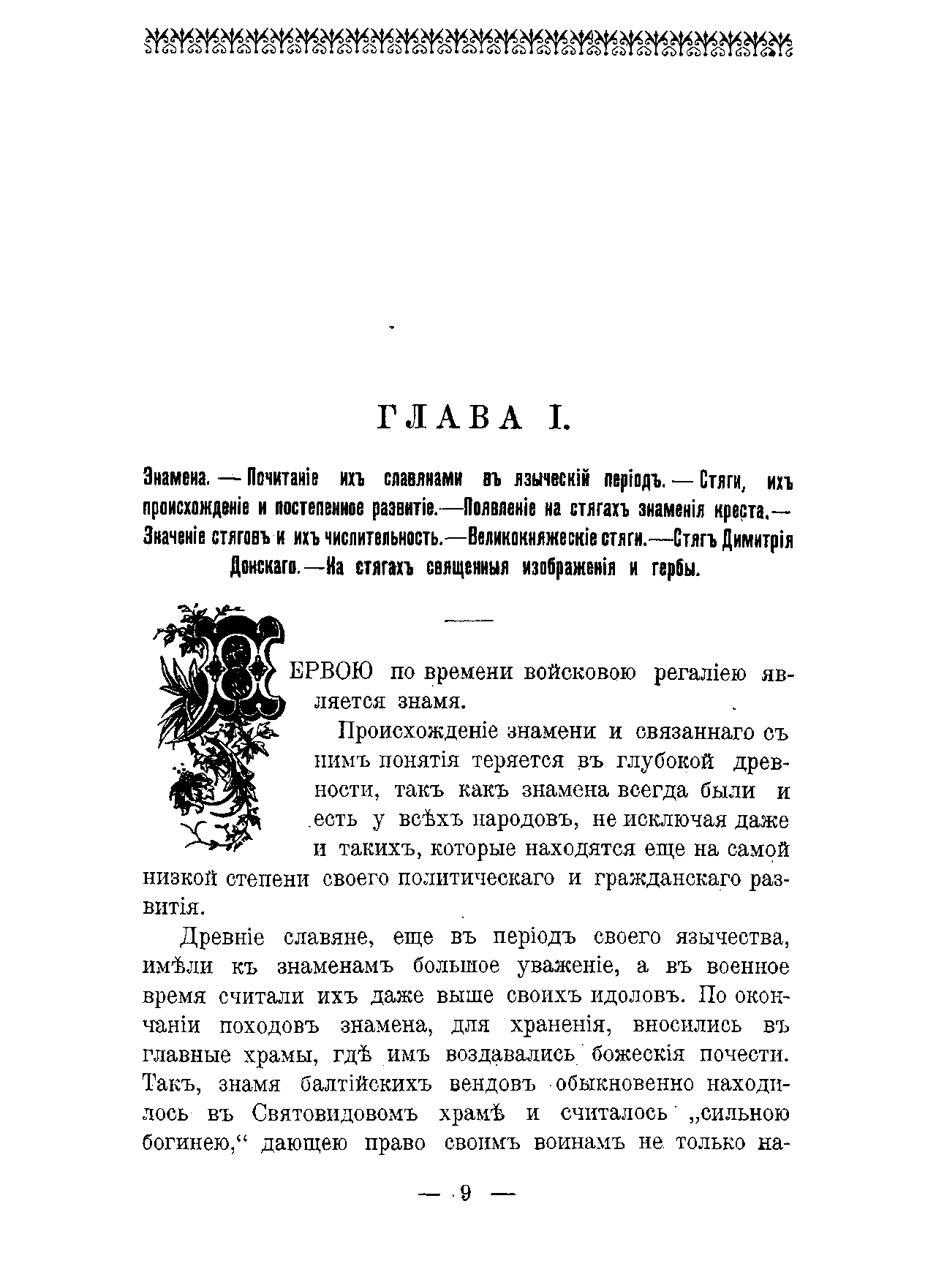 Фундаментальный военно-исторический труд о регалиях и знаках отличия русской армии подводит определенный итог изучению воинской символики в российской военно-исторической науке в XIX веке, описывающий все имевшиеся в последнее царствование в армии знаки отличия, как индивидуальные, так и коллективные. В первой части исследованы регалии великокняжеского и царского периодов, а во второй – рассмотрены знаки отличия с царствования Петра Великого по 1890-е годы. Книга является основополагающим трудом по знакам отличия русских войск, значение которого и сегодня трудно переоценить. В своём исследовании известный военный историк полковник Генерального штаба Н.Г. Николаев выделил основные этапы эволюции знамён (стягов и прапоров) в вооруженных силах России, начиная с княжеских дружин XV столетия, раскрыл их роль и значение в разные исторические эпохи развития Российского государства. В частности этим автором было определено, что знамёна российской императорской армии в начале XVIII столетия, согласно указам Петра Великого, позиционировались как атрибут системы мундирного довольствия и вместе с барабанными перевязями, фурьерскими значками и прочим имуществом учитывались Военной коллегией в описи полковой амуниции. Вместе с тем, с 1731 г. некоторые военные знамёна по именному императорскому указу «стали жаловать подразделениям», а с 1735 г. «Артикулом Воинским с кратким толкованием» было регламентировано принятие присяги при распущенном знамени. В этой работе также утверждается, что именно с введением в действие императором Павлом I в ноябре 1796 г. нового «Воинского Устава», в котором отдельная глава была посвящена освящению новых знамён и «отдаче старых», военные знамёна обрели статус воинских регалий и полковых святынь. Данный труд характеризуется своей уникальной детализацией описываемых предметов. Так, Н.Г. Николаев приводит мельчайшие подробности учреждения в армии знамён отдельных видов конницы. Например, сразу же после учреждения гусарских полков в русской коннице, в октябре 1741 года гусары стали получать знамена, которые полагались на каждую роту. Знамя было легкое, разрезное, с длинными хвостами «по гусарскому обыкновению». Срок их службы был определен в 10 лет. Перевязи к ним корнеты изготовляли за свой счет и меняли их по усмотрению ротного командира. Одно; из знамен (полковое) полагалось белое, с государственным гербом, а остальным ротам цветные, с императорским вензелем.