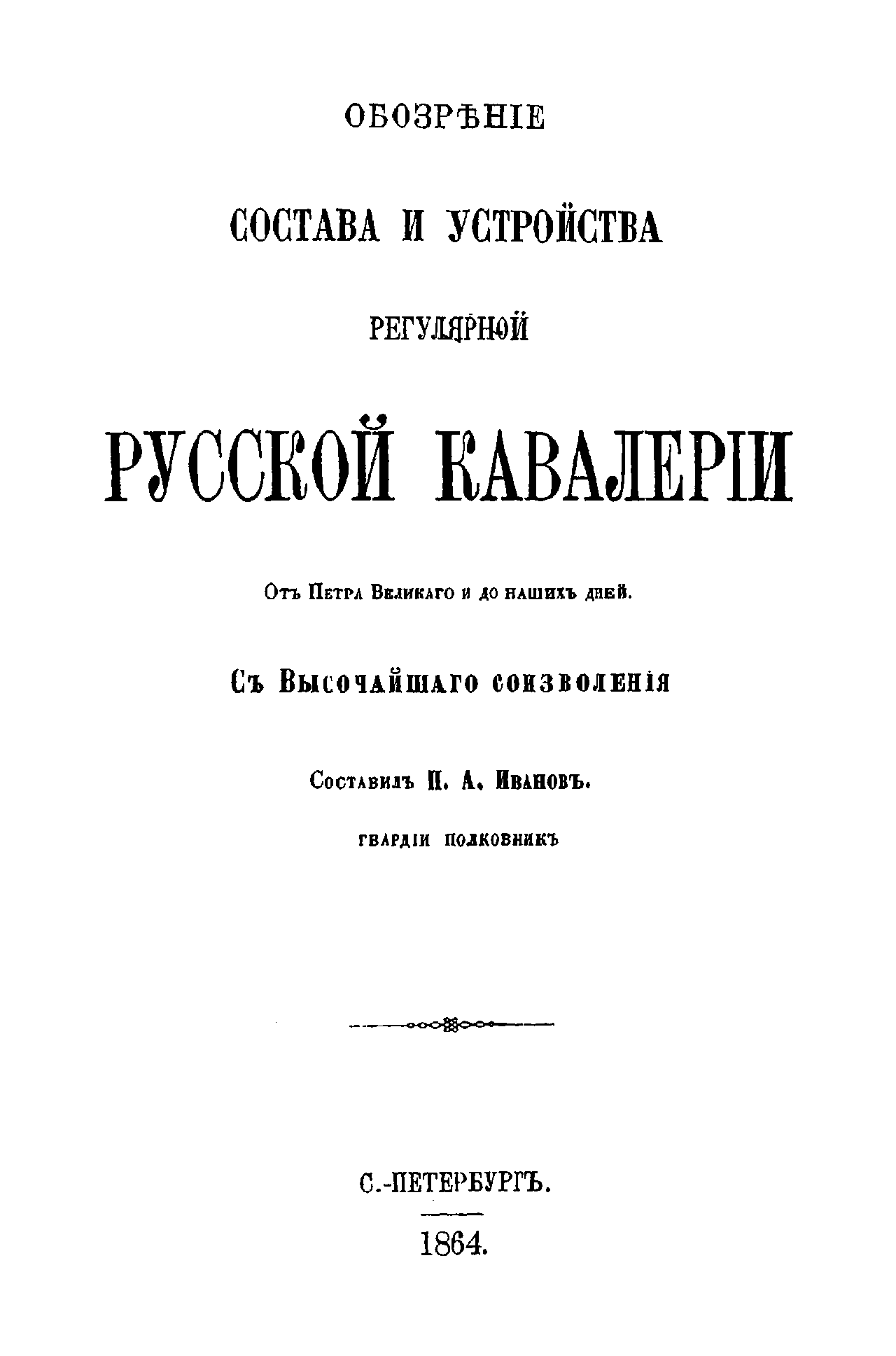 Обозрѣніе состава и устройства регулярной русской кавалеріи отъ Петра Великаго до нашихъ дней