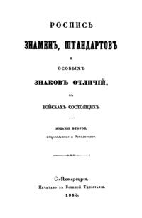 Роспись знаменъ, штандартовъ и особыхъ знаковъ отличiй, въ войскахъ состоящихъ