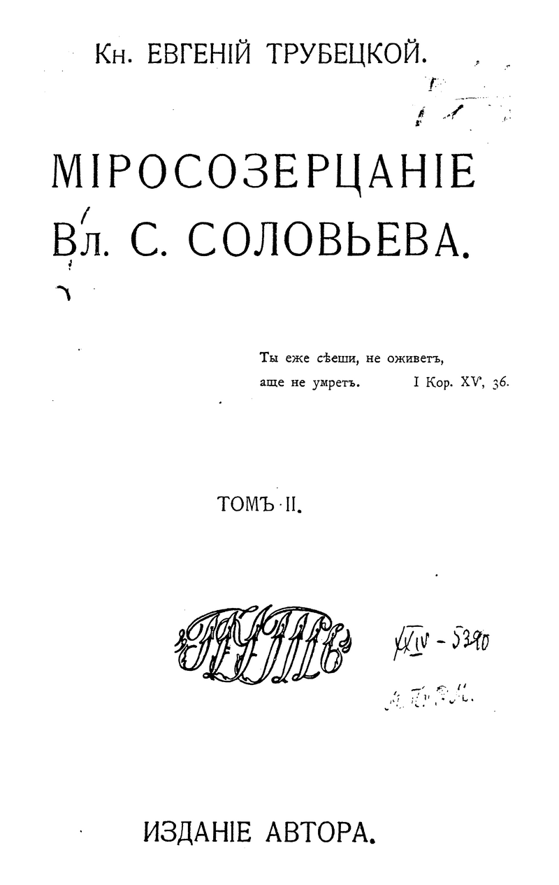 Двухтомный труд кн. Е. Н. Трубецкого – результат осмысления короткой жизни и интенсивного творчества русского философа, богослова, поэта и публициста