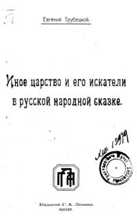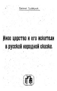 Осенью 1919 г. в разгар гражданской войны в Новочеркасске под впечатлением сказок Афанасьева Е. Трубецкой готовит лекцию «Иное царство и его искатели в русской народной сказе». Лекцию прочитать не удалось, но она была издана в 1922 г. в Москве. В этой работе философ вскрывает глубинные смыслы устного народного творчества. В своих выводах он исходит из того, что в сказке зафиксированы «неумирающие ценности человеческой жизни» и она дает возможность лучше понять душу народа. Именно сказки подтверждают мысль философа о том, что любая национальность оказывается «лишь ветвью общечеловеческого ствола».