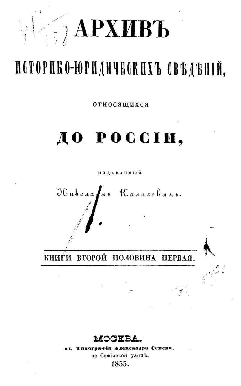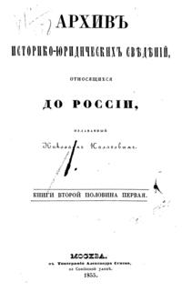 Архив историко-юридических сведений, относящихся до России. Книга II. Половина первая