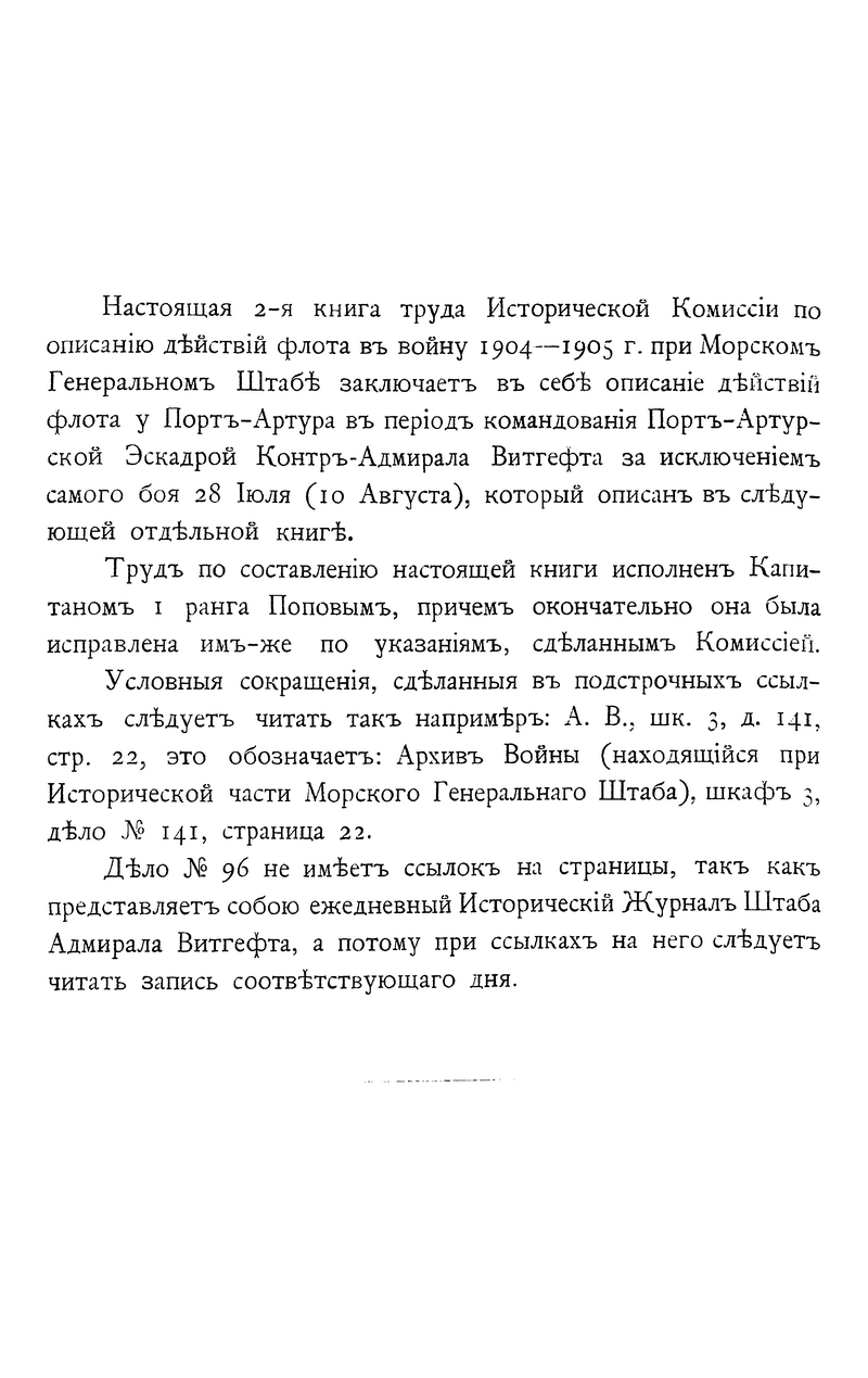Данное многотомное военно-историческое исследование было подготовлено и издано в результате кропотливой и длительной деятельности. Исторической комиссии по описанию действий российского императорского флота и его личного состава в годы русско-японской войны 1904-1905 гг., специально созданной при Морском генеральном штабе для изучения трагических последствий этой войны для России и её флота.