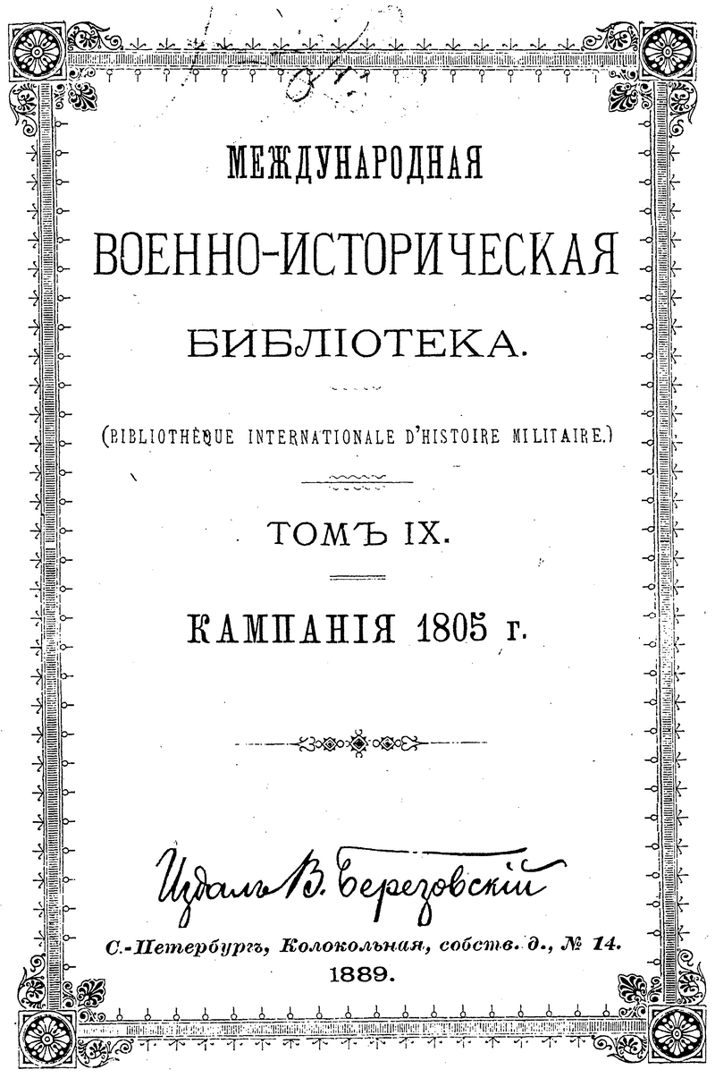 Международная военно-историческая библиотека. Том IX. Кампания 1805 г