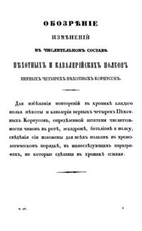 Важнейший энциклопедический справочник, содержащий детальную историю всех российских войсковых частей. Составлен в правление Николая I.