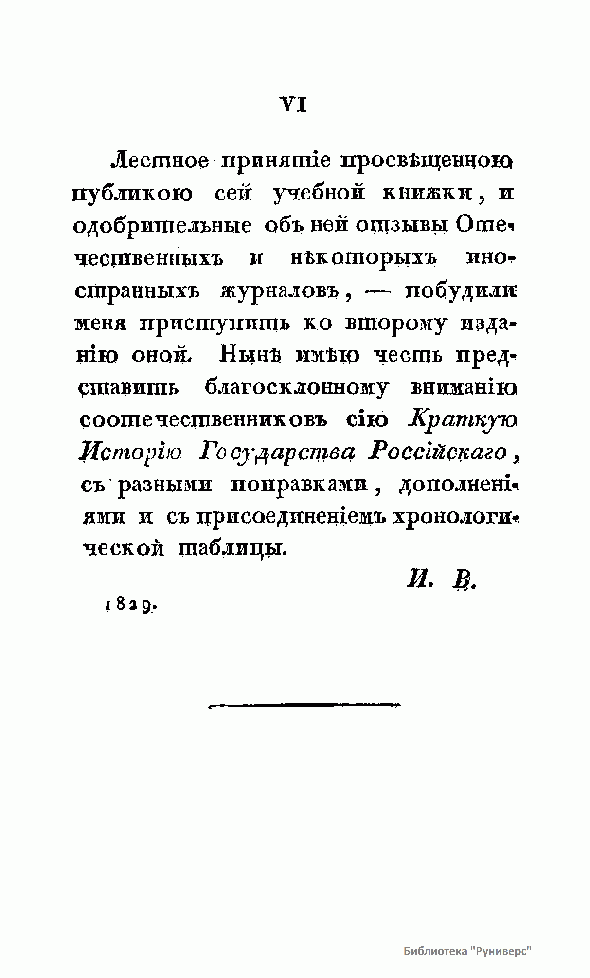 Данное учебное пособие, подготовленное магистром, а затем адъюнкт-профессором Московского университета Иларионом Васильевичем Васильевым, преподававшим русское законоведение. Оно представляет собой краткую аннотированную хронологию российской истории по правлениям князей и монархов, распределенную на три части: от Рюрика до Ивана III (862–1462), от Ивана III до Петра Великого (1462–1689) и от царствования Петра Великого до начала правления Николая I (1689–1830). Формально автор опирается на исследования М.Н. Карамзина, однако его взгляды ярко отражают консервативно- охранительную концепцию, доминирующую в системе образования России после 1825 г. Его перу также принадлежат такие труды как "Новейшее руководство к познанию российских законов" (Москва, 1826); "Фемида, или Начертание преимуществ прав, и обязанностей женского пола в России"(Москва, 1827); "Историческое обозрение актов и судебных бумаг в России" (в "Трудах Общества Истории и древностей российских", ч. V, Москва, 1830).