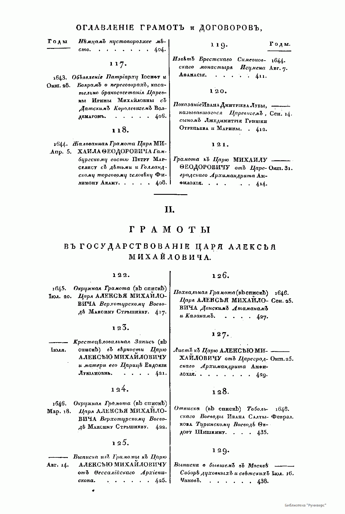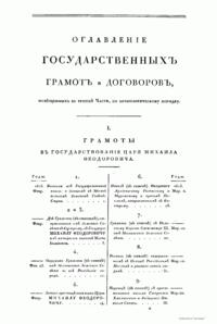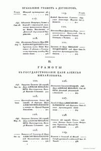 Издание документов по русской истории (из архива Министерства иностранных дел). Было опубликовано 5 частей. Первые четыре части (1813-1826) включают в себя больше тысячи документов, относящихся к внутренней истории русского государства XIII - XVII вв. В этих частях опубликованы документы земских соборов, росписи царских венчаний, жалованые грамоты, уставные грамоты, торговые уставы, крестоцеловальные записи, ярлыки ордынских ханов, следственное “Угличское дело” (1591) и др. Пятый том (1894) содержит документы внешней политики России за XVI – XVII вв. В частности, в пятом томе опубликованы документы по истории дипломатических отношений России с Польско-Литовским государством, Англией, Австрией, Ливонией, Турцией, Крымским, Казанским ханствами, Ногайской ордой и др.