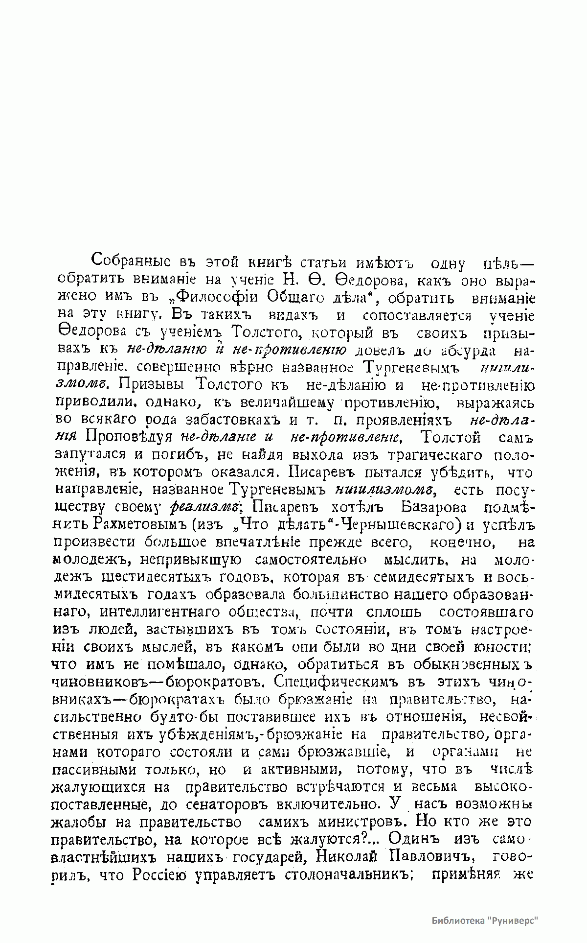 Н.Ф. Фёдоров и его книга "Философия общего дела" в противоположность учению Л.Н. Толстого "о непротивлении" и другим идеям нашего времени
