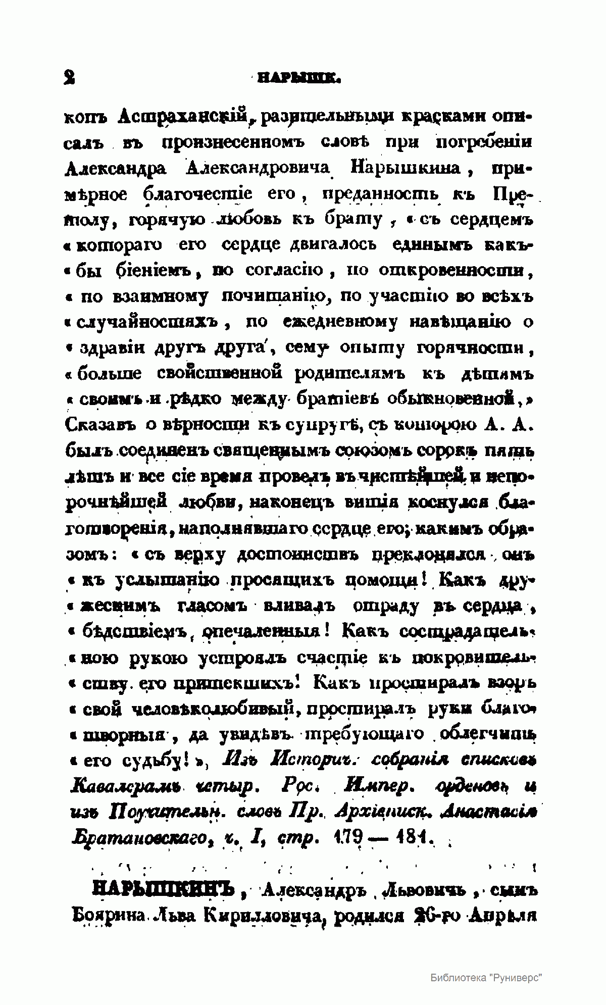«Словарь достопамятных людей Русской земли…», впервые вышедший в свет в 1836 г. в пяти частях, фактически стал главным трудом видного историка, писателя и археографа николаевской эпохи Д.Н. Бантыш-Каменского. Получив прекрасное домашнее образование, автор последовательно шел по стопам своего отца, известного государственного деятеля, историка и архивиста
