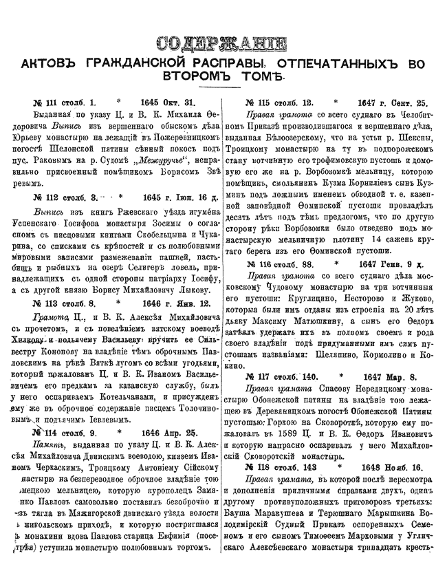 Указатели ко 2-му тому актов