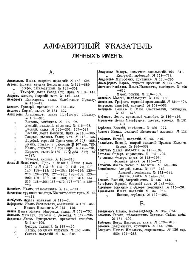 Указатели к 1-му тому актов