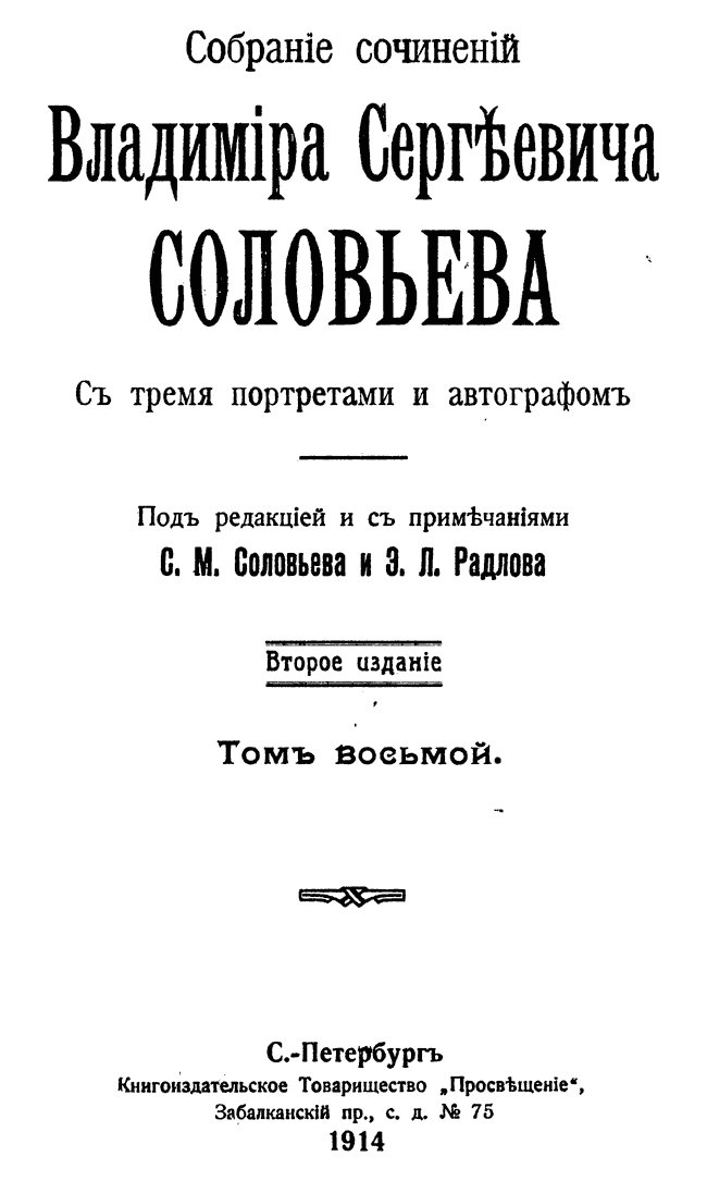 Собрание сочинений Владимира Сергеевича Соловьева. Том VIII