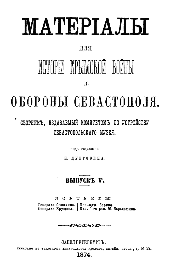 Матерiалы для исторiи Крымской войны и обороны Севастополя. Выпускъ V