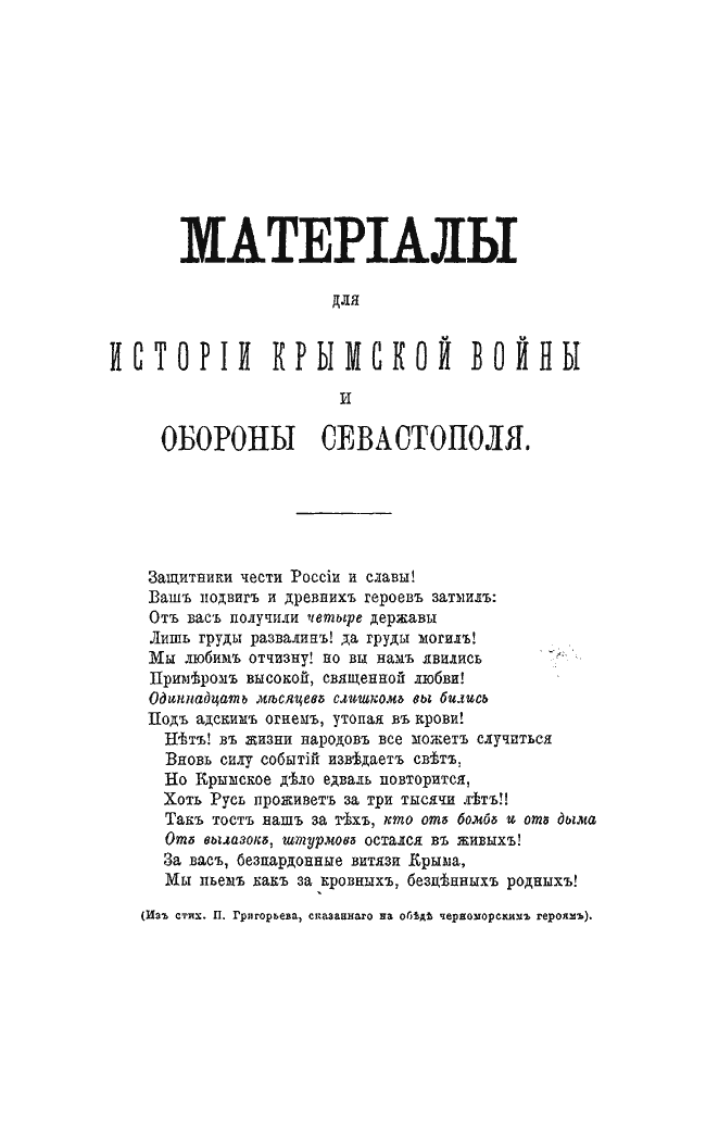 Материалы для истории Крымской войны и обороны Севастополя