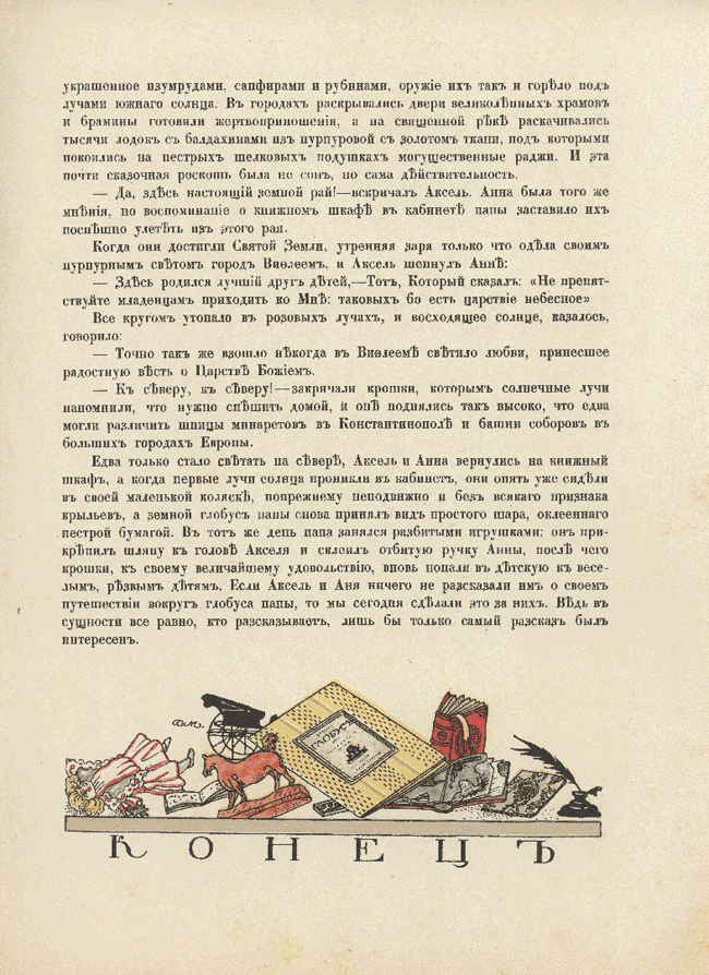 В «Подарочную серию» из 12 книг, задуманную И. Кнебелем и оформленную художником Д. Митрохиным, вошли две сказки писателя Р. Густафсона. Одна —"Земной глобус папы«, вторая — «Баржа». До нашего времени не сохранилось сведений о писателе и переводчиках его текстов на русский язык. Но, прочитав эти произведения, можно понять, почему издатель выбрал именно их. В рассказе «Земной глобус папы» читатели попадают в мир рождественской сказки — мир игрушек, добрых фей и сказочного путешествия. Благодаря Фее Фантазии, куклы летят над Швецией, Норвегией, Англией, Северным морем, Нью-Йорком, Америкой, Китаем, Индией, над Святой Землей. Такой сюжет расширял кругозор ребенка, которому была посвящена «Подарочная серия». В других книгах этой серии действия происходили и в Африке, и на Востоке, и в Азии. Увлекательный рассказ, новые знания, доброе отношение к окружающему миру всегда будут причиной успеха у маленьких читателей.