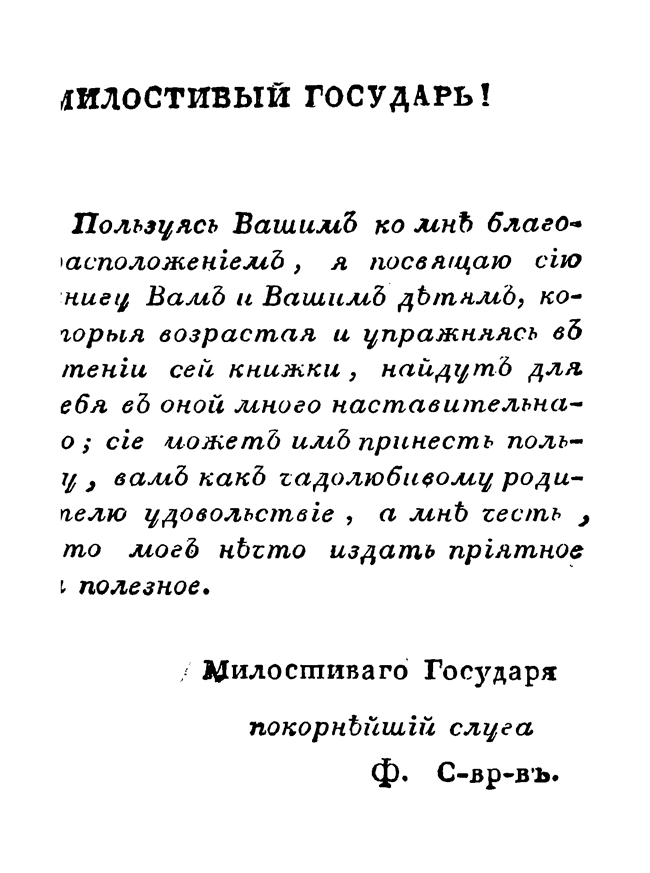 Книга относится к разряду нравоучительной литературы. В посвящении Н. С. Дубровину издатель пишет, что дети должны «найти для в оной много наставительного, сие может принести пользу».