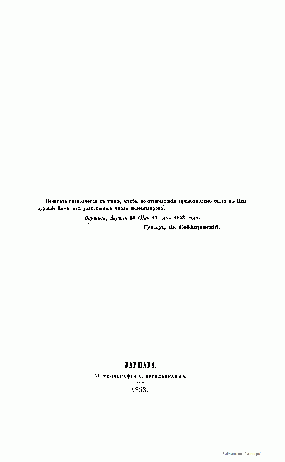 Издание книгопродавца-типографа М.О. Вольфа