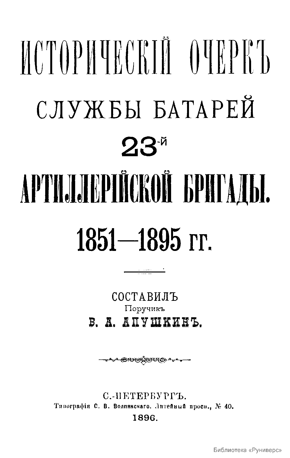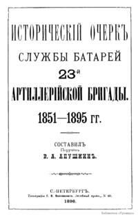 Историческiй очеркъ службы батарей 23-й артиллерiйской бригады 1851-1895 гг