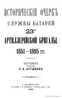 Исторический очерк службы батарей 23-й артиллерийской бригады 1851-1895 гг