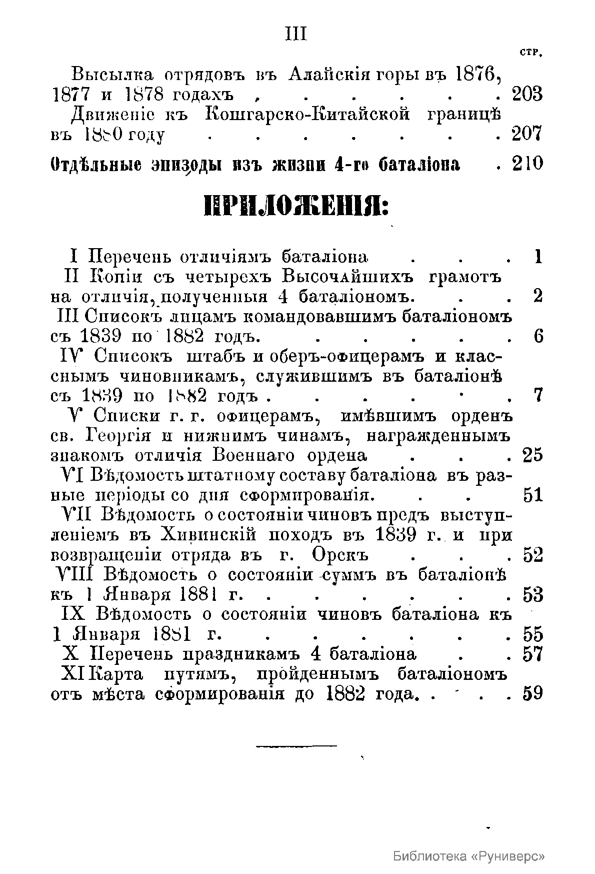 В предисловии к составленному военно-историческому очерка боевого пути 4-го Туркестанского линейного батальона его автор – поручик В.Н. Зайцев отмечает, что батальон, насчитывающий уже второе столетие своего существования, до сих пор «не имеет никаких данных о прошлом, которое по преданиям было крайне интересным и составило бы хороший предмет по боевому воспитанию современных борцов на окраине». «Желание познакомить чинов батальона с его боевой жизнью в походах от г. Оренбурга до настоящего места квартирования, близ китайской границы в г. Ош Ферганской области, дало мне мысль приступить к выборкам из трудно достававшихся источников и материалов по составлению истории». В данной книге вся боевая деятельность 4-го Туркестанского линейного батальона с момента его формирования до 1882 года разделена на три наиболее значительных периода. Первый период охватывает краткую хронику событий, связанных с формированием в августе 1771 года в оренбургской степи на базе гарнизона крепости Звериноголовск пограничного батальона в составе 5-ти рот и одной инвалидной команды. С этого момента и начинается история боевой деятельности батальона за 1771-1839 гг. Второй период боевой деятельности батальона включает события с 1839 по 1865 гг. описание участия батальона в Хивинском походе 1839-1840 гг., столкновениях с киргизами, сражении при Кум-суате, взятие крепостей Яны-Курган и Дин-Курган, взятие г. Туркестан, и, наконец, взятие Ташкента в июне 1865 года и основание русского Ташкента. Наконец, третий период охватывает 1865-1882 гг. В этой хронике описаны следующие события: поход через голодную степь к Джизаку, взятие Джизака в 1866 году, сражение под Самаркандом на Чупанатинских высотах, Хивинская экспедиция в 1873 году, штурм Андижана в 1873 году, покорение Кокандского ханства в 1875-1876 гг., а также участие в экспедициях в Алайские горы до кашгарской границы в 1876, 1877 и 1878 гг. Приложения к очерку включают списки командиров батальона и офицеров, служивших с 1839 по 1882 гг., а также список награжденных орденом святого Георгия и нижних чинов, награжденных знаком отличия Военного ордена, а также документы административно-хозяйственного содержания.