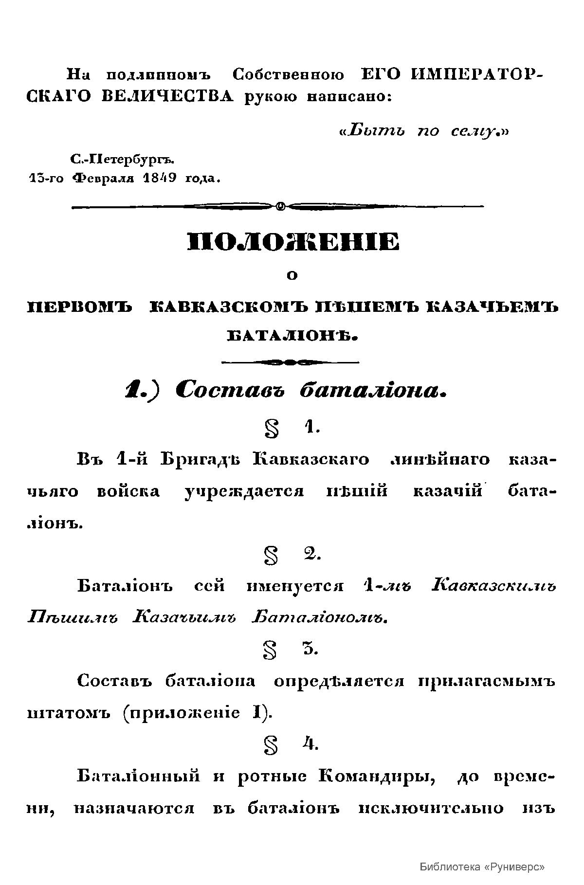 Положение о первом кавказском пешем казачьем батальоне