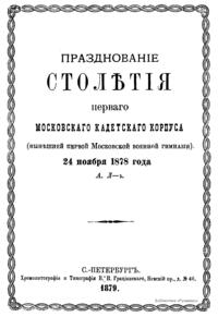 Празднованiе столѣтiя перваго Московскаго кадетскаго корпуса (нынѣшней первой Московской военной гимназiи) 24 ноября 1878 года