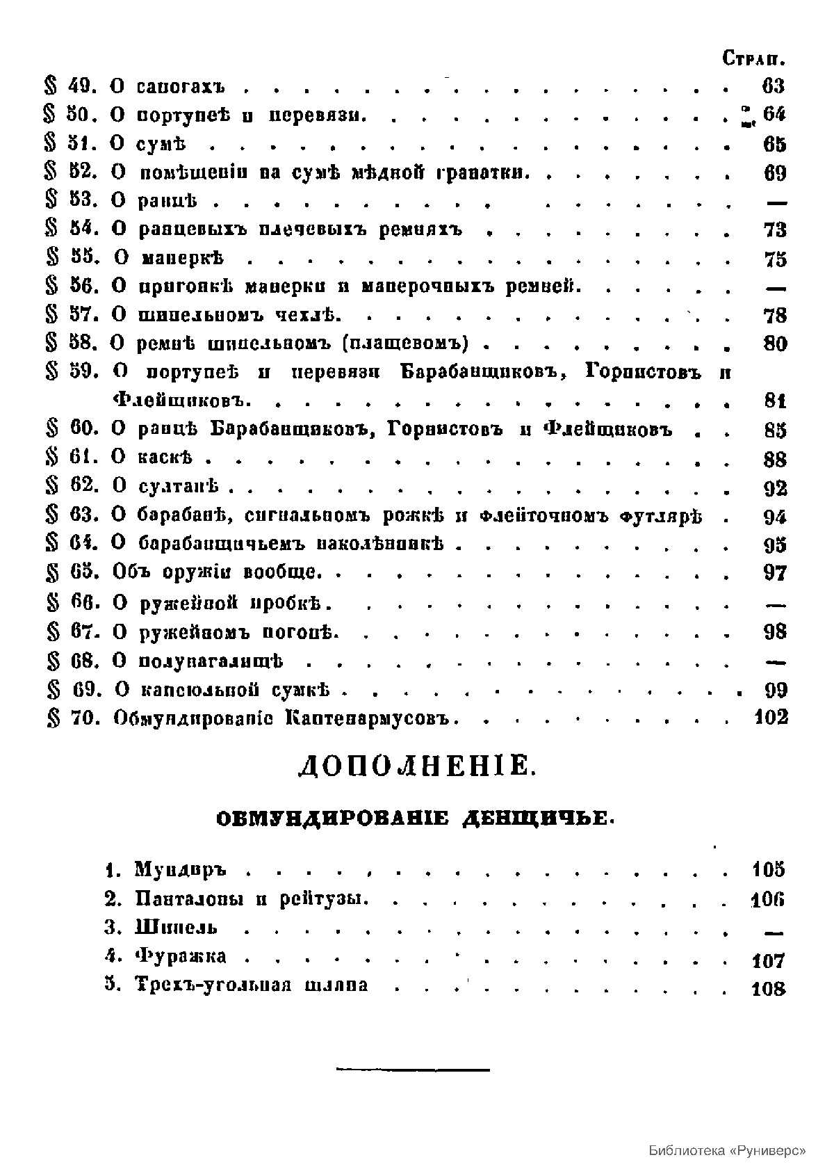 Инструкция, изданная в 1849 г. по приказу Главного начальника военно-учебных заведений Штаба его Императорского Высочества, в которой даны ранжированные стандарты обмундирования для воспитанников военно-учебных заведений Российской империи.