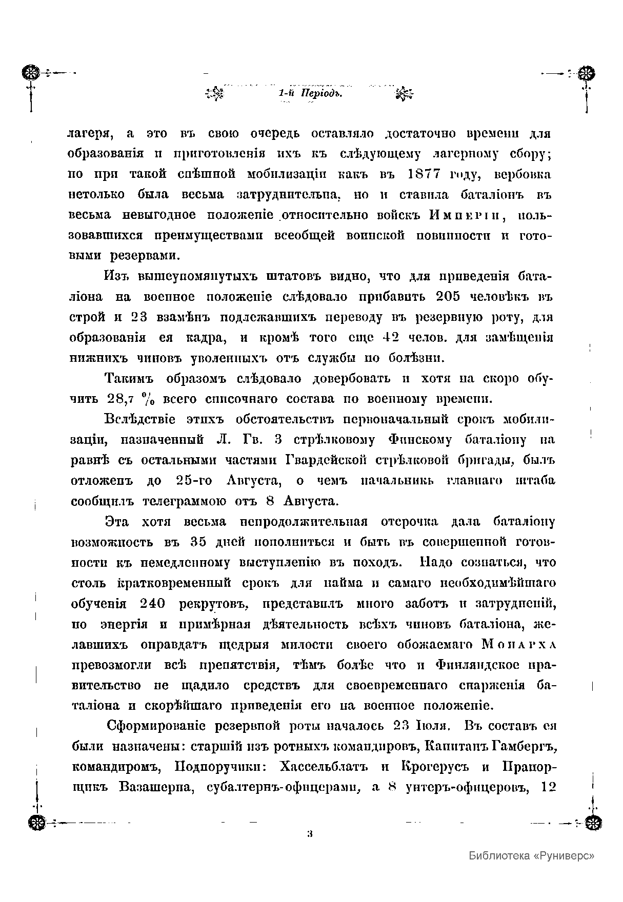 Хронологическiй очеркъ участiя Л.-Гв. 3-го стрѣлкового Финскаго баталiона въ кампанiи противъ Турокъ 1877-78 г