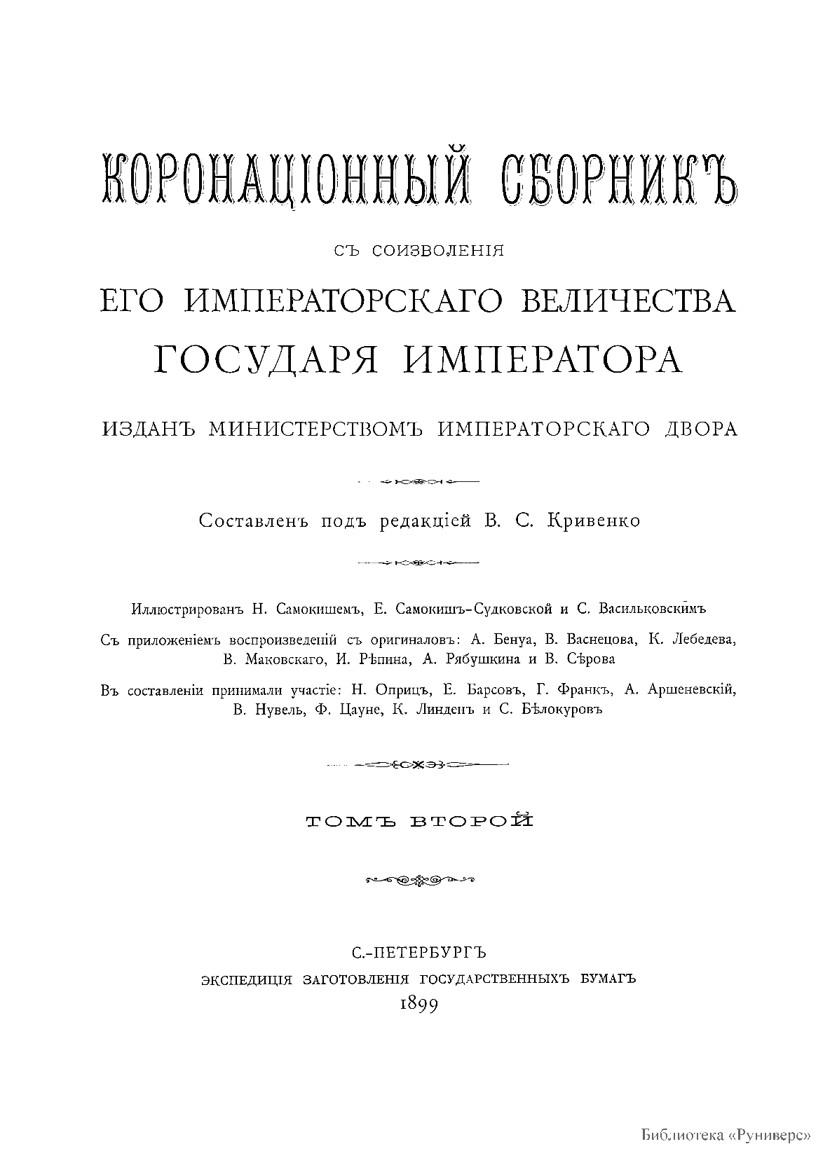 Коронацiонный сборникъ. Съ соизволенiя Его Императорскаго Величества Государя Императора. Томъ второй