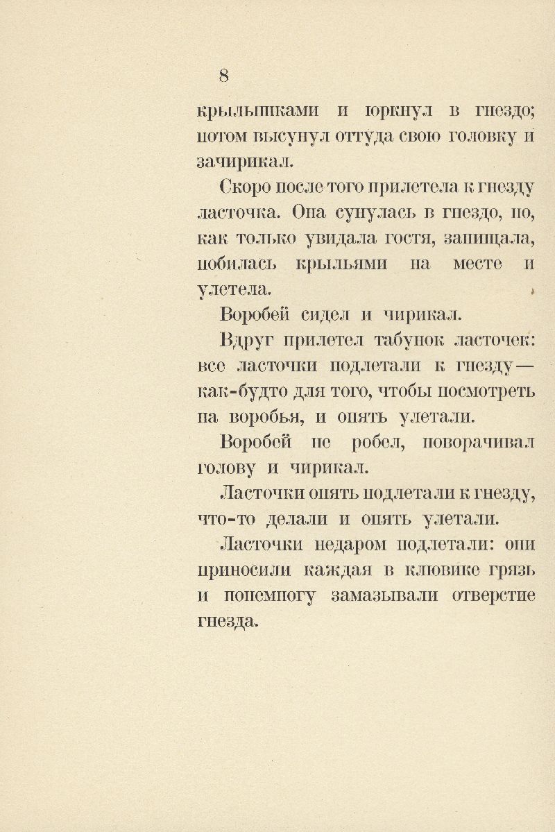 Толстой говорил одному из своих друзей: «Дети – строгие судьи в литературе. Нужно, чтобы рассказы были для них написаны и ясно, и занимательно, и нравственно». Ещё одно непременное условие, которое предъявлял Толстой к детским книжкам, – простота. Рассказы о животных полностью отвечают этим требованиям. Лаконичные, доходчивые, занимательные – они могут быть интересны и понятны детям даже дошкольного возраста. Простота изложения сочетается с мастерским владением языком, присущим Толстому. Изящные гравюры Фаворского также не могут не привить ребенку хороший вкус. Эта редкая книга определенно является одним из тех экземпляров, которые можно пожелать иметь в личной библиотеке каждому маленькому читателю.
