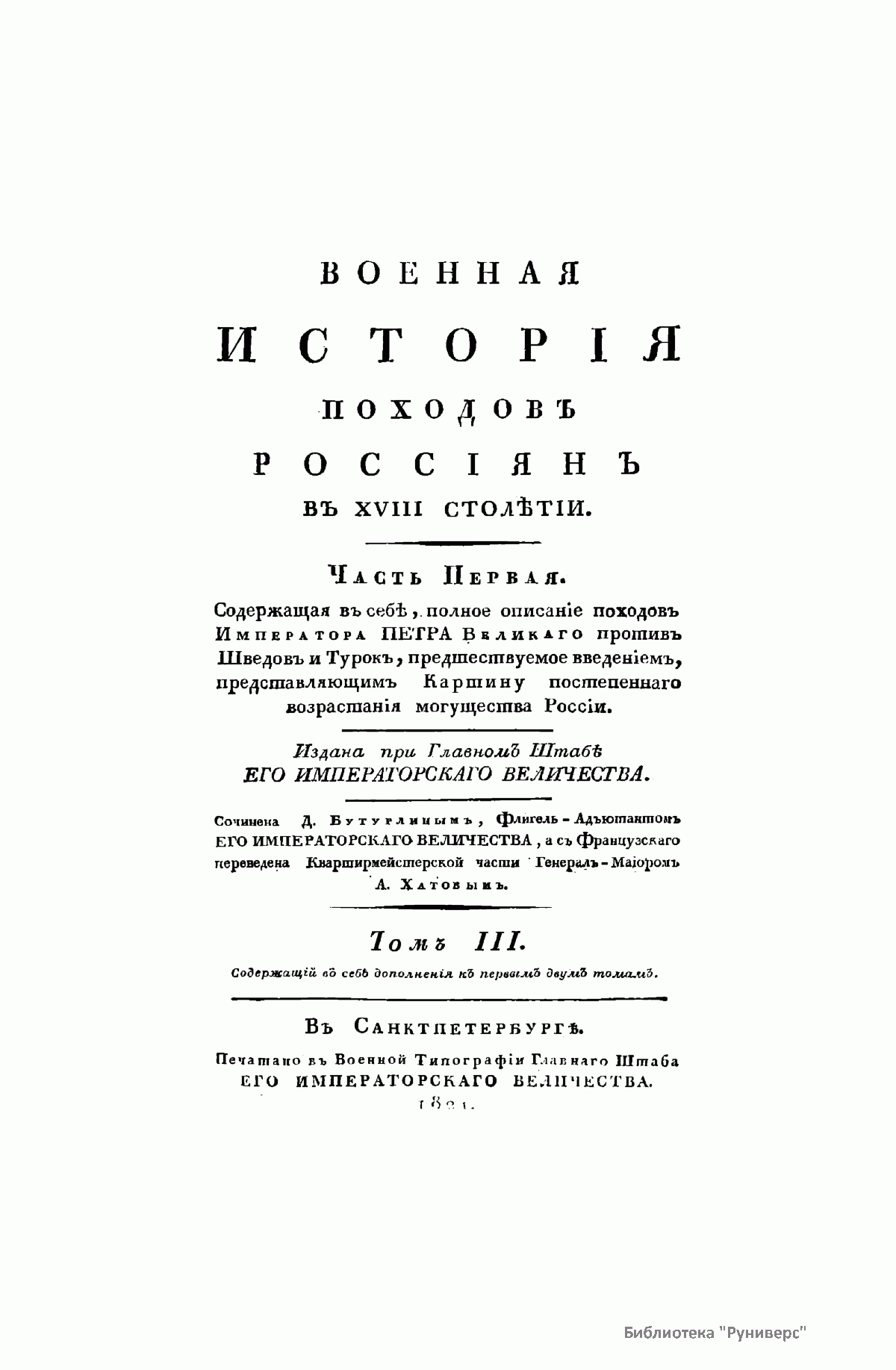 Военная исторiя походовъ россiянъ въ XVIII столѣтiи. Часть первая. Томъ III