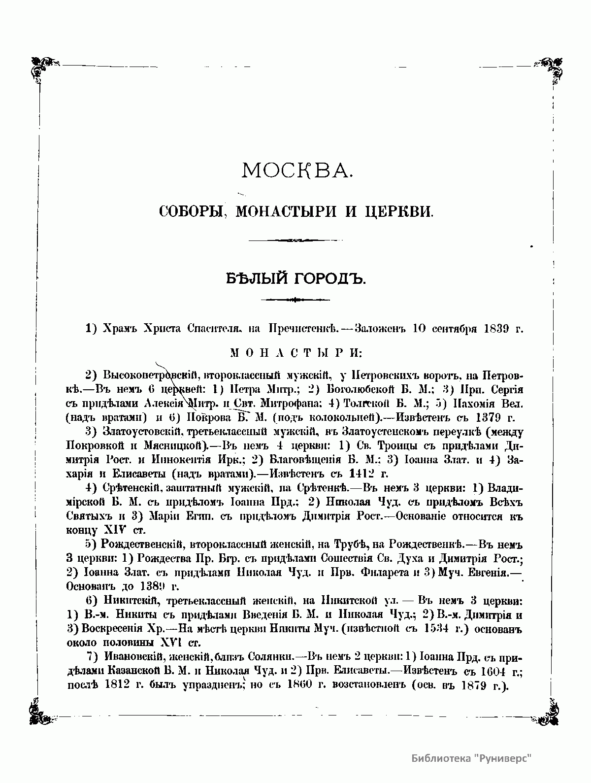 Москва. Соборы, монастыри и церкви. II. Бѣлый городъ
