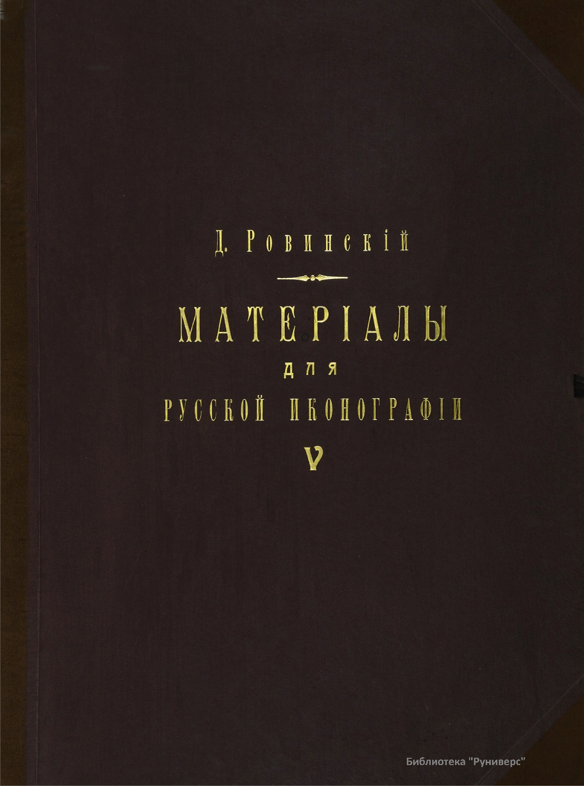 В 1882 г. Д. Ровинский издал книгу «Достоверные портреты московских государей: Ивана III, Василия Ивановича и Ивана IV Грозного – и посольства их времени». Это исследование составляло первый отдел предпринятой автором русской иконографии. За ним должны были следовать другие отделы. Материалов для каждого из этих отделов накопилось довольно много, но тем не менее существовали еще значительные пробелы, которые не позволяли приступить к систематическому изданию. Но так как любители и собиратели старины настаивали на издании, автор приступил к предварительной публикации собранных им снимков под общим названием «Материалы для русской иконографии». В эти материалы вошли портреты, виды, исторические и бытовые листы, листы, изготовленные для истории русской гравюры, работы граверов-серебряников, а также отпечатки с оригинальных старинных медных досок. Все снимки, за немногим исключением, сделаны в одну меру с оригиналами. Самые замечательные и редкие исполнены на меди по способу Г. Скамони, или печатаны со стекла посредством альбертотипии (у Шера и Набгольца в Москве и за границей) и фотогиалотипии (у г. Скамони); менее редкие и важные картинки исполнены посредством фотолитографии.
