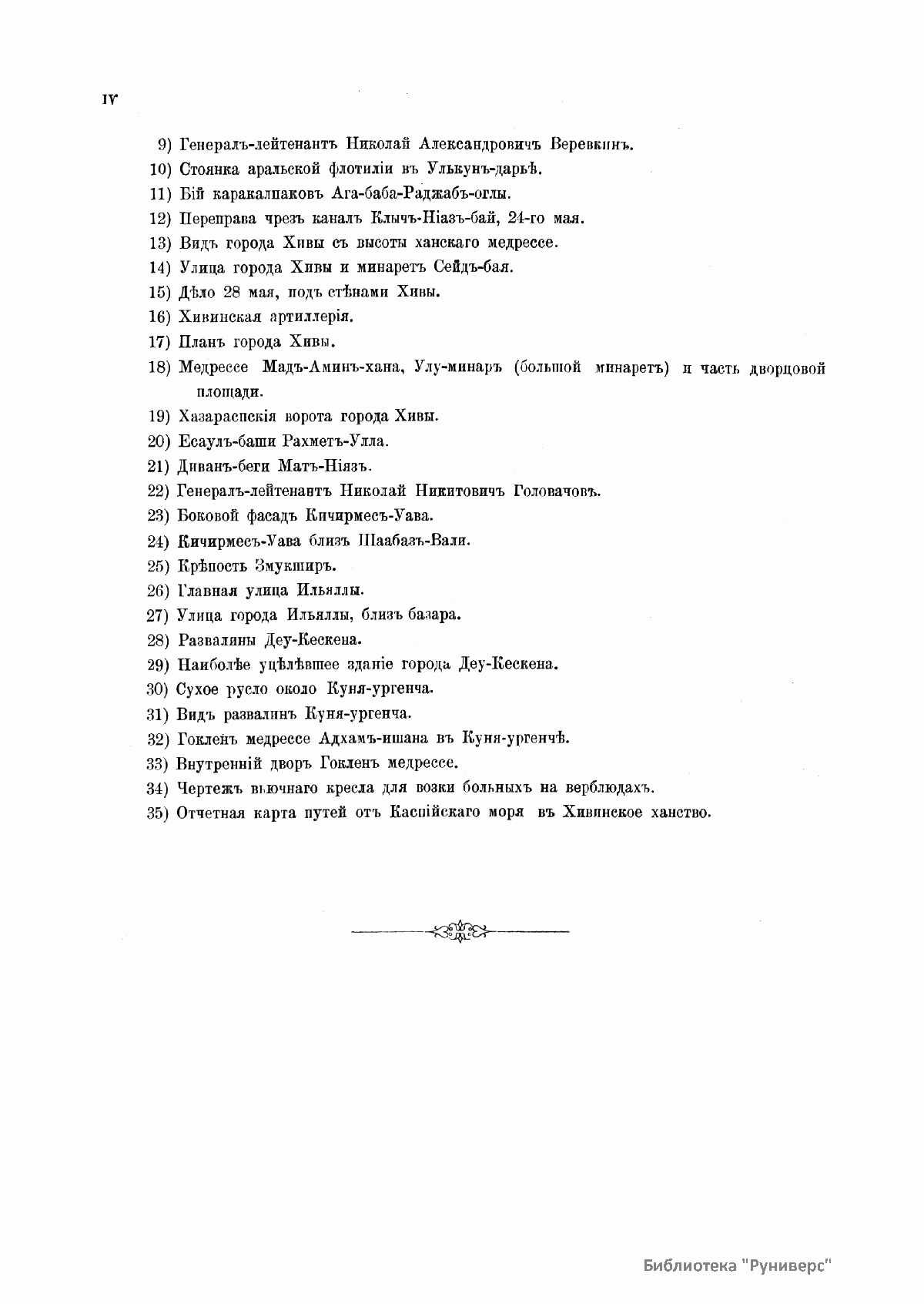 Данное издание представляет собой описание событий Хивинского похода 1873 года. Автор книги Гродеков Н. И. являлся участником военной экспедиции в качестве начальника штаба Мангышлакского отряда полковника Ломакина и за боевые отличия был награжден орденом св. Станислава 2-ой степени. Основные события похода, включая сравнительную оценку разных известных до военных действий путей, автор превосходно описал в данной книге. Издание было значительно дополнено двумя главами, портретами главных деятелей войны, рисунками, планом города Хивы, что дает возможность рассмотреть картину похода со всех сторон.