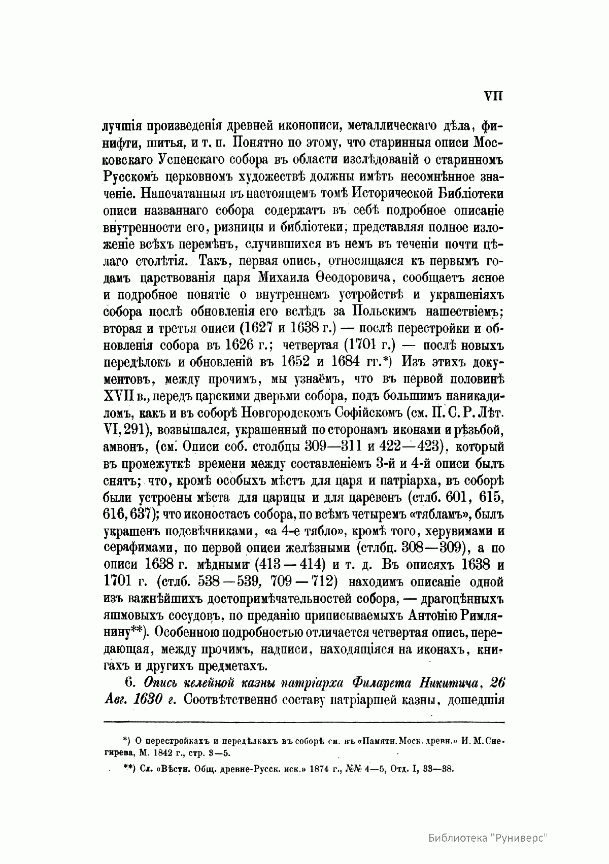 Указатель, дополнение и примечания к VII тому Русской исторической библиотеки